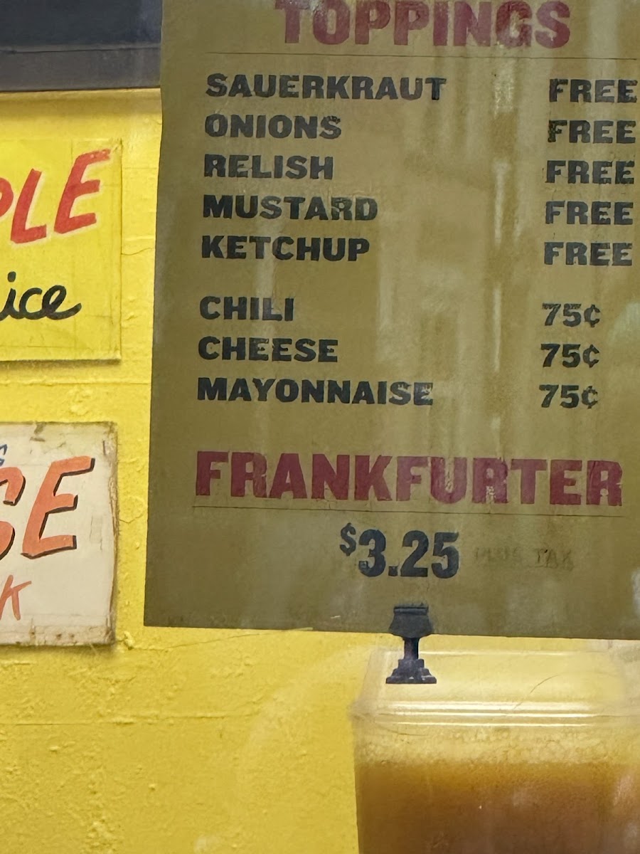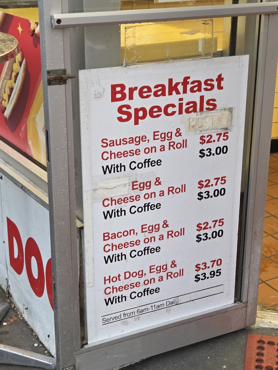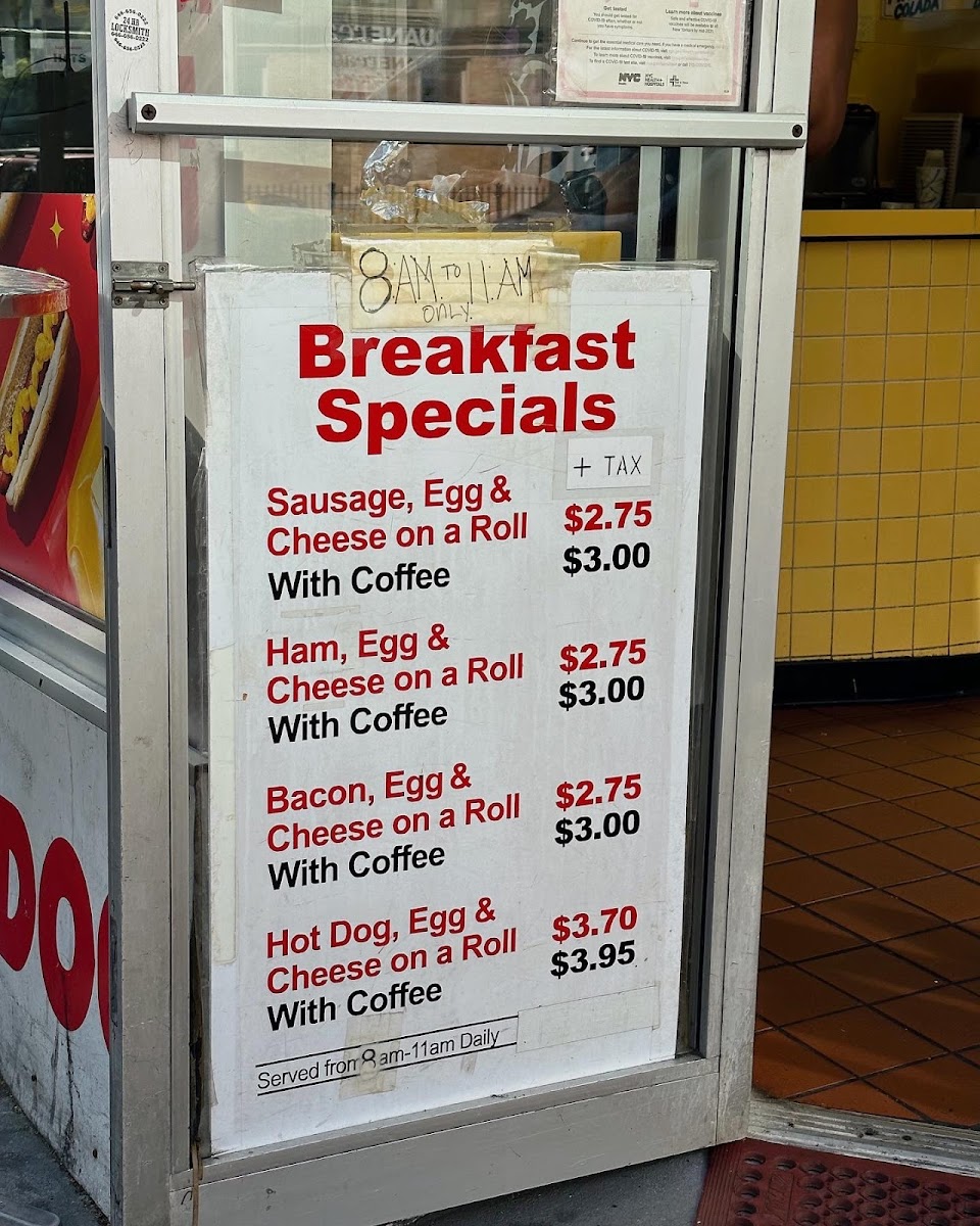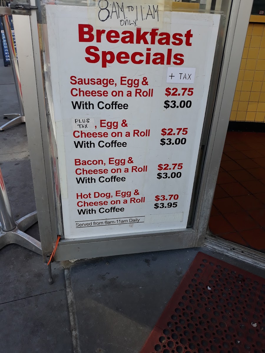 Specializing in classic American hot dogs, Gray's Papaya offers a menu that delivers value and taste without the fuss. You can indulge in their signature Frank for just $3.25, topped with your choice of classic condiments like relish, onions, mustard, and sauerkraut that elevate this simple dish to delightful heights. For those looking to start their day right, the Breakfast Roll (with options for eggs, cheese, and your choice of ham, bacon, or sausage) offers a delicious morning treat at only $2.75. Pair your meal with a refreshing Pineapple Juice for $6.00 to taste the freshness in every sip, or perhaps try the Iced Coffee for a cool, caffeinated boost.